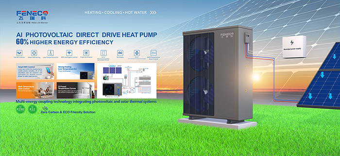 光伏直驱热泵系列:采用先进的MPPT最大功率点跟踪技术与自主研发的Smart能源管理系统,无需逆变器及储能电池,安装便捷;光伏利用率最高达100%,节能90%以上,热泵优先使用光伏直流电,阳光充足时可实现中央空调、生活热水“零”耗电运作,进一步提升环保性与安全性。